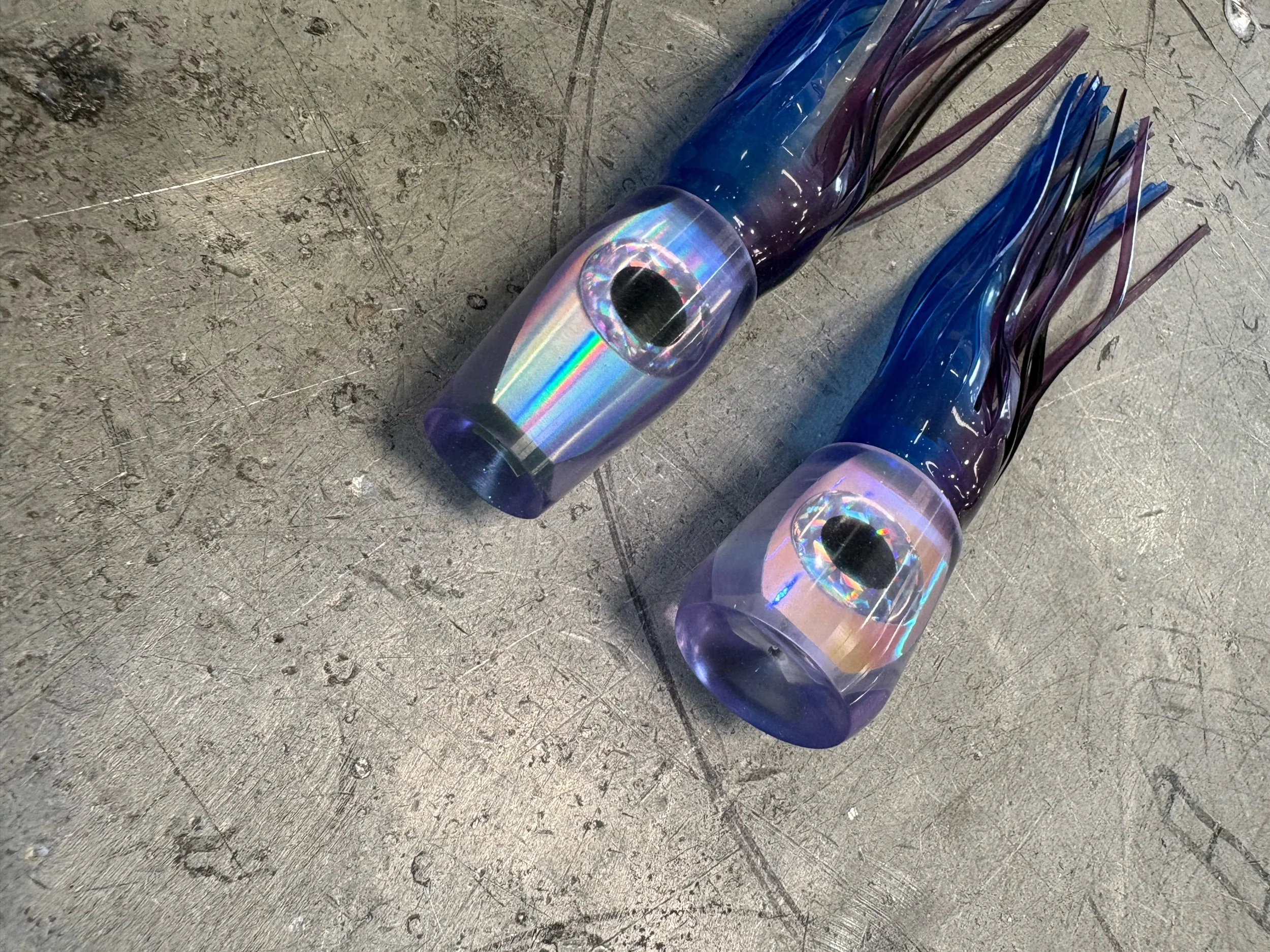 This big sucker comes in at 10 inches overall length. A scaled-up version of the small sucker that has a little more action and a lot more smoke with its larger jets while still being an easy lure to set and pull in your spread. Be prepared for some bill rash on these heads.