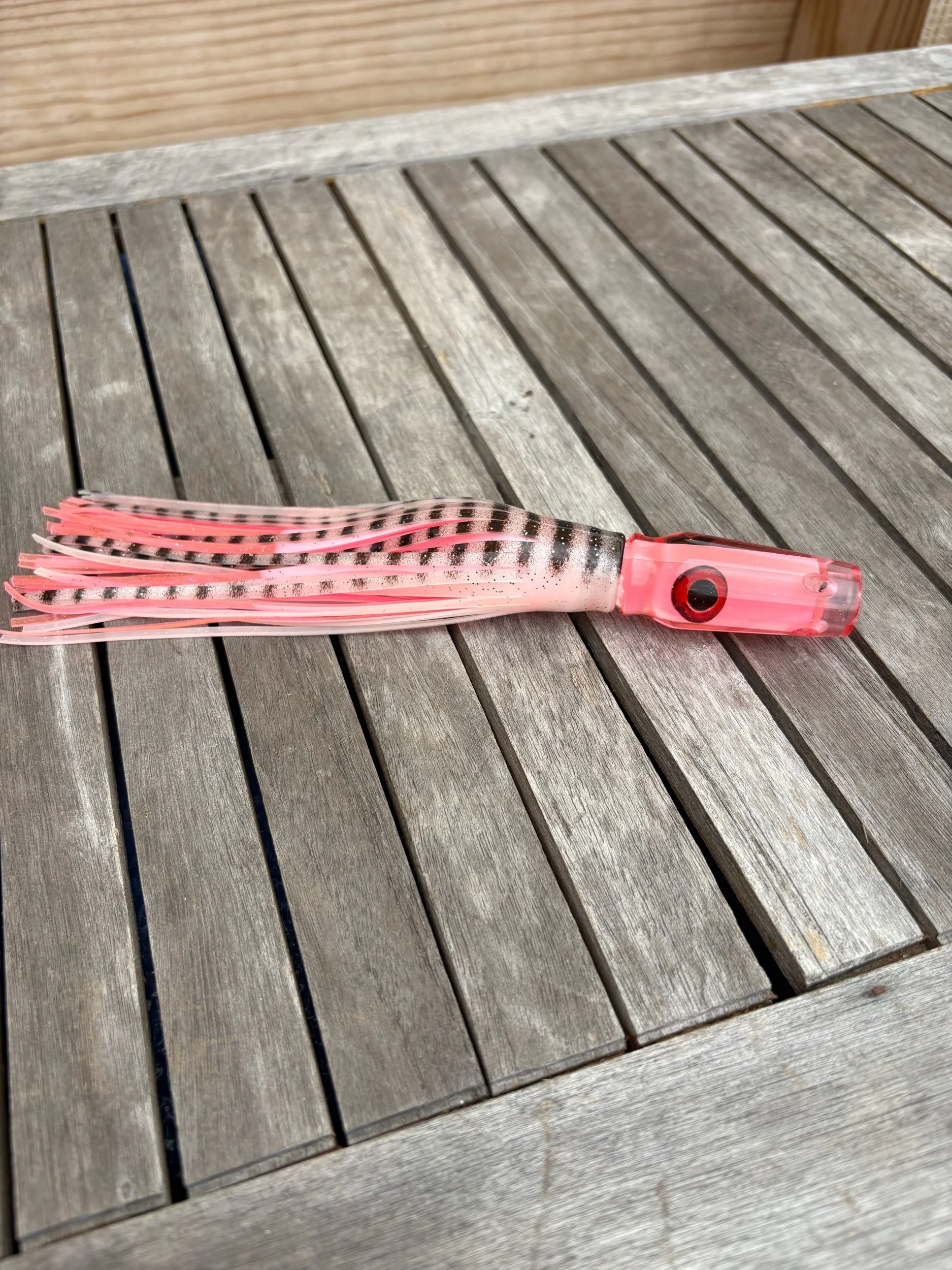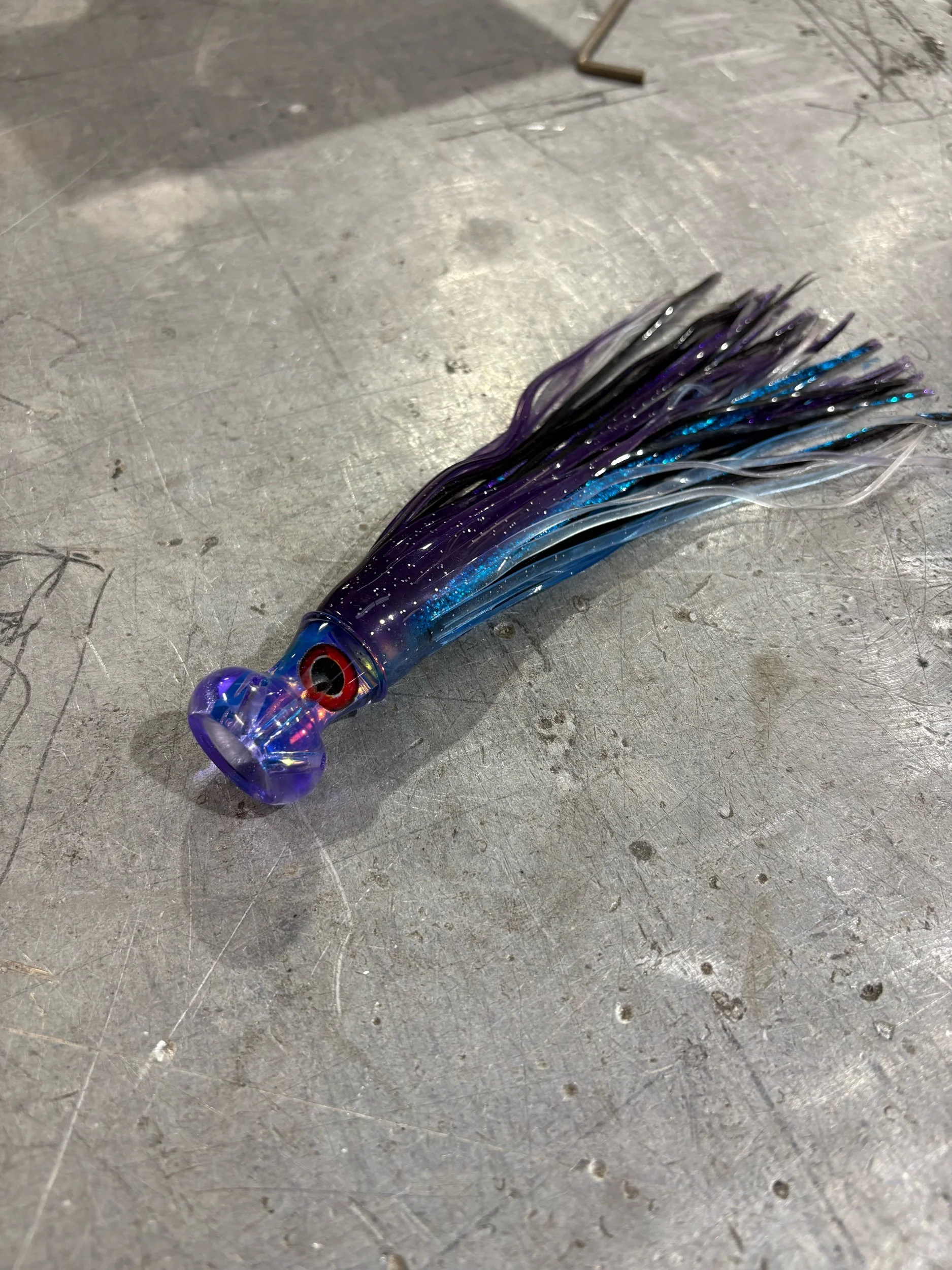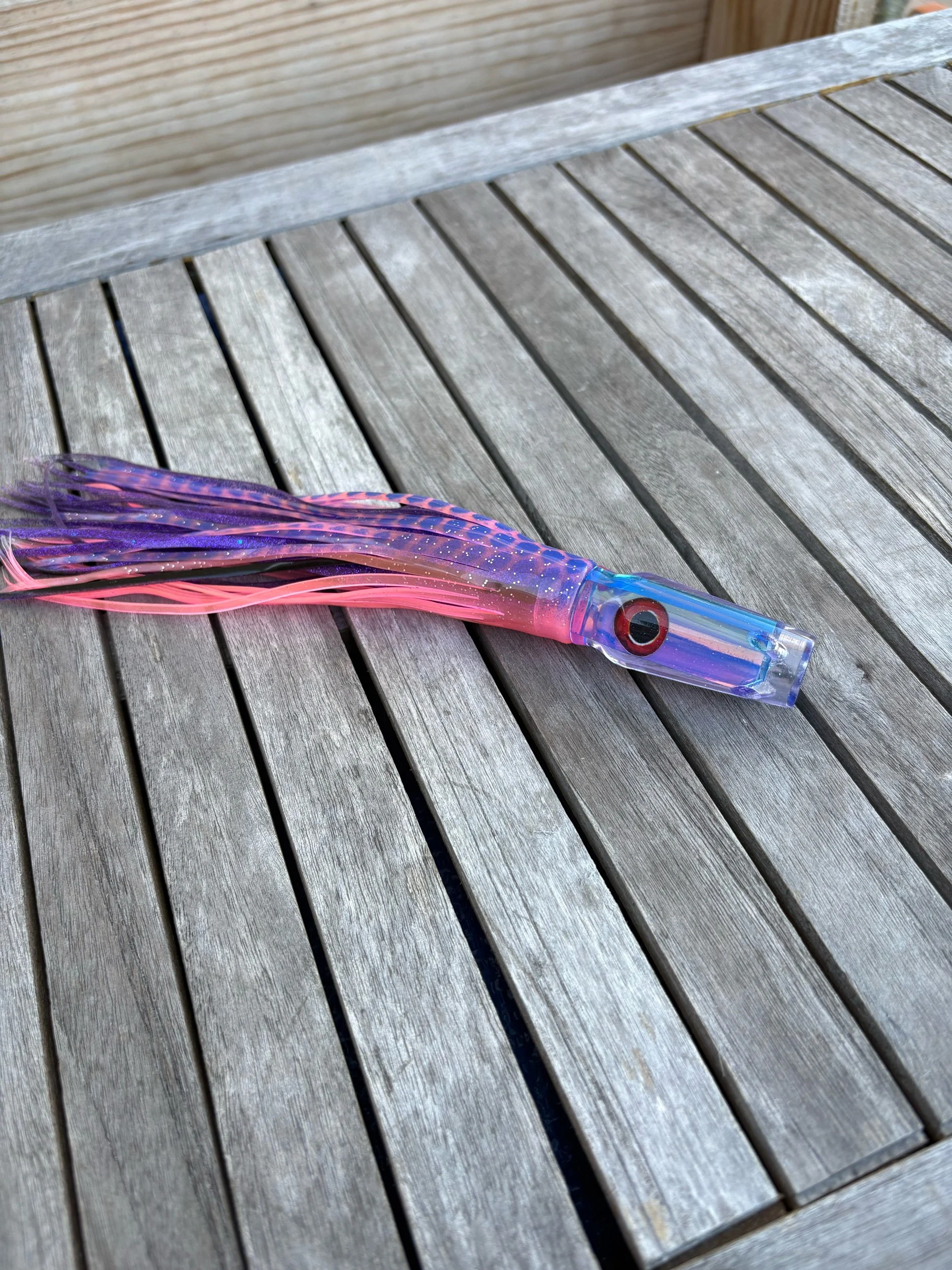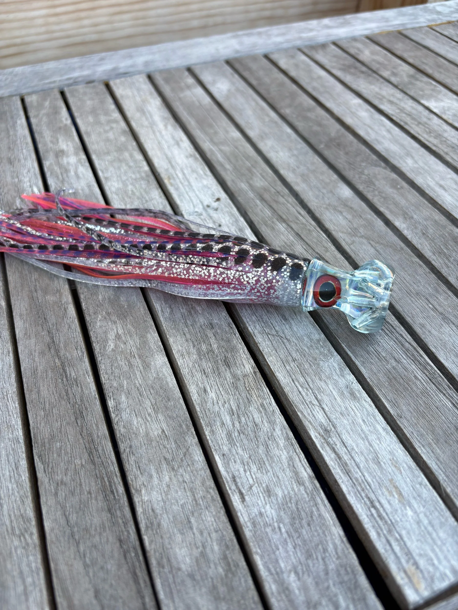 This light tackle lure is easy to set in the spread and pull in all-weather conditions. Has a nice, very tight head shake and produces plenty of smoke to attract the big girls. Primarily irresistible to meat fish but has seen its fair share of billfish action.