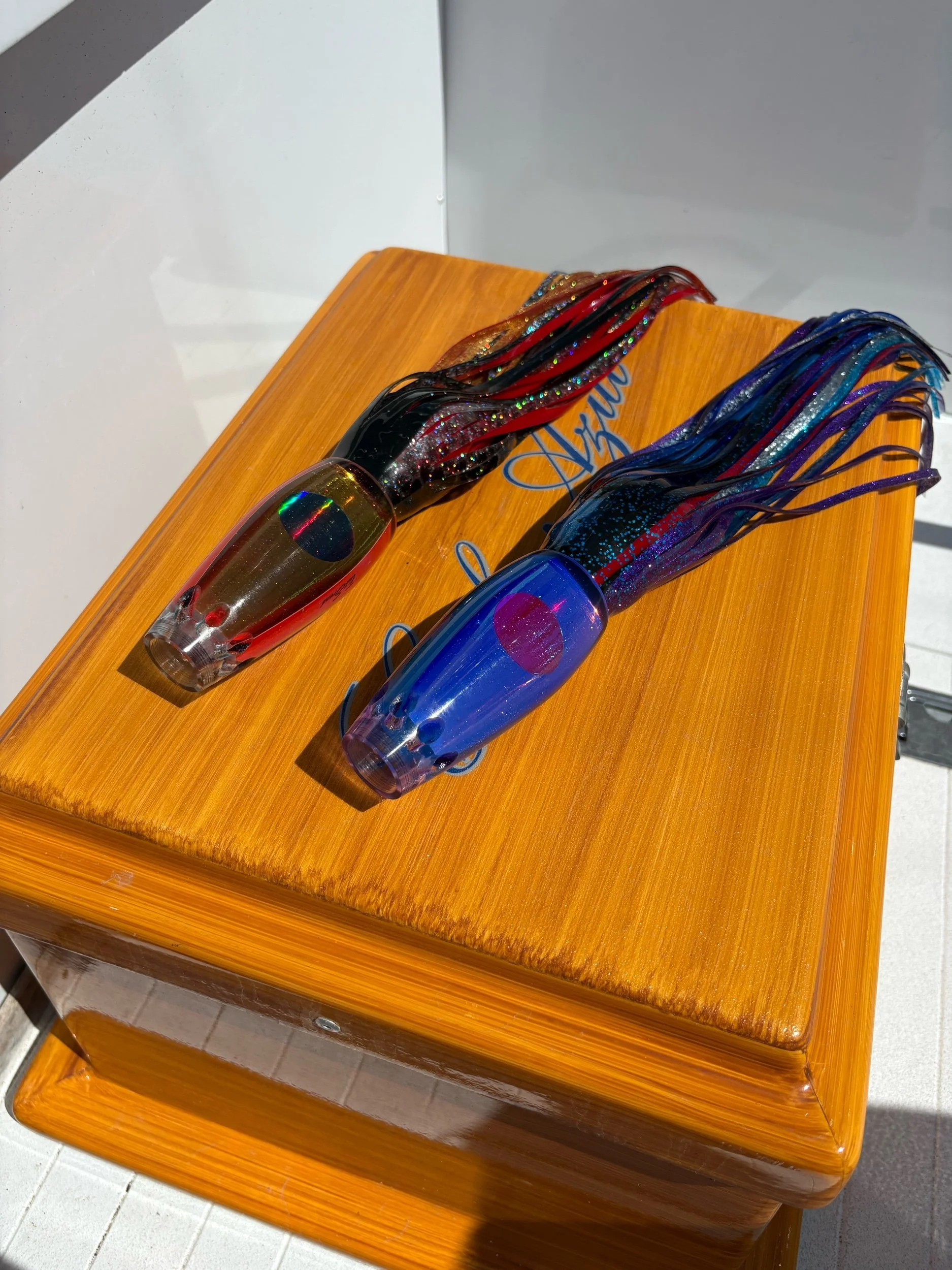 Hands off my Jimmy! This is the 13” plug she tells you not to worry about. Shakes aggressively, proven marlin raiser. The head is not weighted and can be slow trolled.