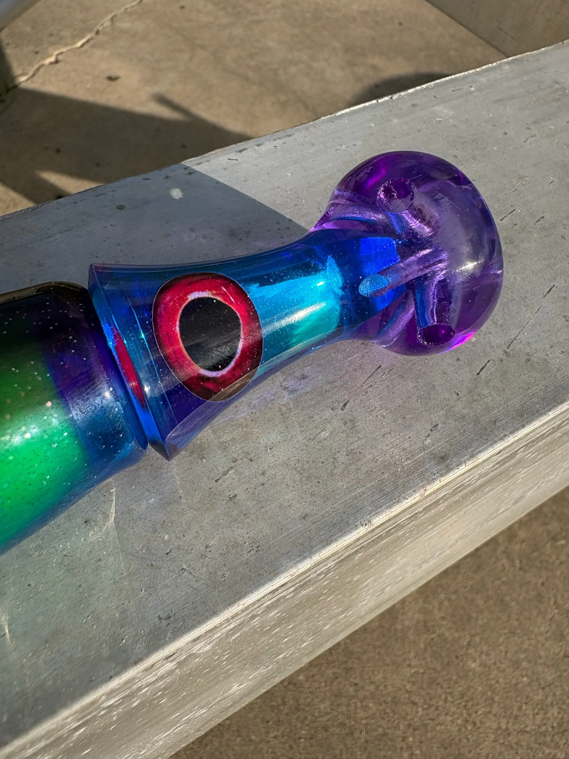 A new style of jetting for resin heads. This head has four jets at the face of the lure that run into a mixing chamber, from there water/air exits one large circular jet that is just before the skirts. The final jet is shaped like a valve on an engine cylinder head. Smokes like no other lure. the body of the lure stays clean while the smoke exits in a thick fog out of the valve like jet at the rear of the head just before the skirts.